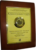 Лауреат национальной премии в области бизнеса "Компания года 2009" в номинации "Брокерские услуги" |