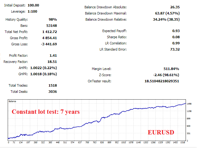 Это бесплатная версия советника Investo. Система не открывает сделки в один из дней недели(среда). Это позволяет полноценно проверить работоспособность эксперта, системы управления капиталом и контроля позиций. Можно торговать на реальных счетах. Но прибыльность полноценной версии больше. Полная версия: www.mql5.com/ru/market/product/41102