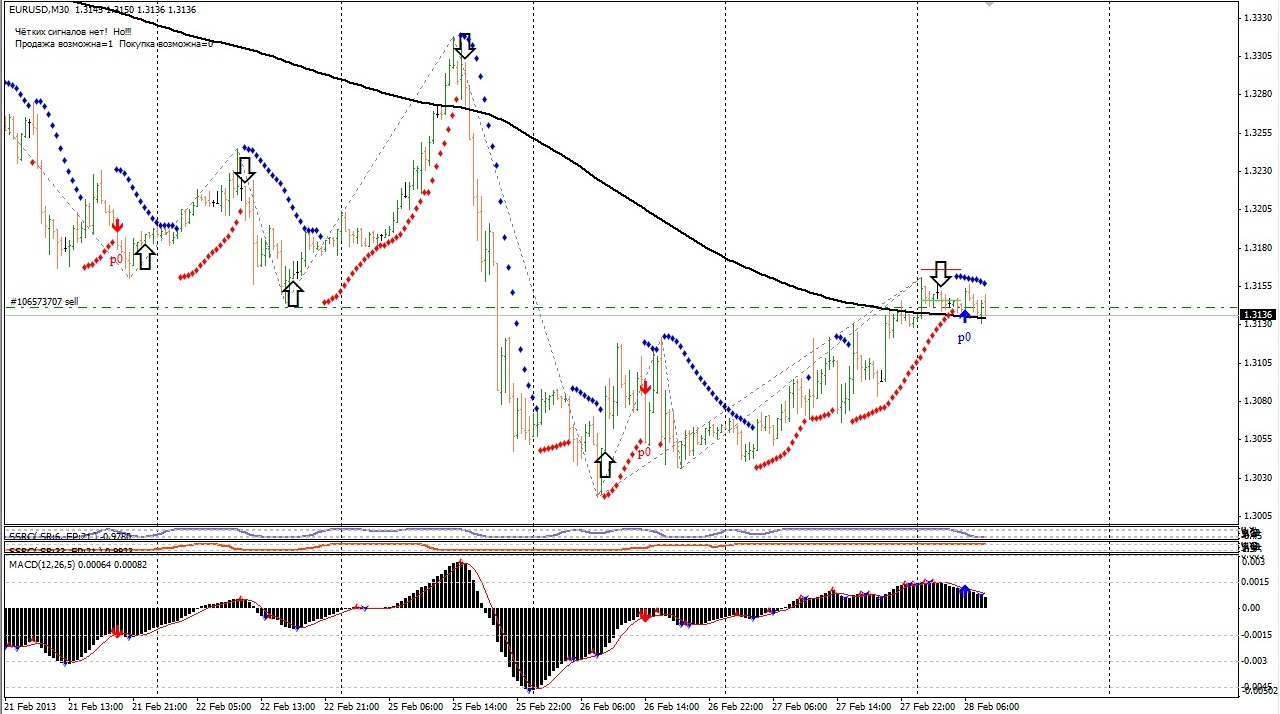 Решил немного усовершенствовать данную систему. Добавлен пораболик с настройками 0,02 и 0,2; так же МАКД со стандартыми настройками; для ориентира дополнительно МА 200. Вход: при появлении стрелки и ПОДТВЕРЖЕНИИ ПОРАБОЛИКОМ в направлении стрлки, ну и чтоб наверняка — смотрим еще МАКД. Тесты пока нормальные, главное соблюдать правила, т.е. не дергаться когда от 2ZZ появилась стрелка, тем более что стрелки рисуются… Пара евробакс, ТФ М30.