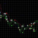 Появился зеленый большой кружок у индикатора — если у нас нет открытых buy позиций, ставим buy stop на уровне конца красной линии плюс отступ. Если зеленый кружок исчез и появился снова — несработавший buy stop убираем и ставим снова.